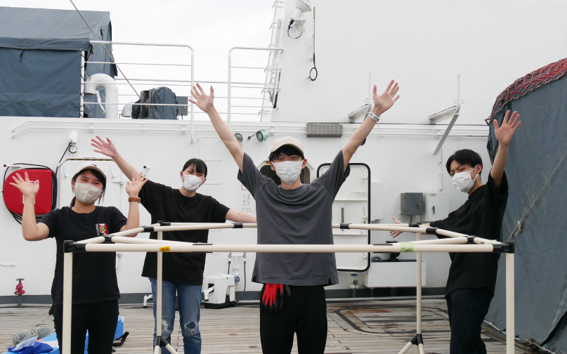6月18日から7月3日、水産学部は附属練習船「かごしま丸」を利用し、線状降水帯のメカニズム解明研究のために東シナ海上の集中観測に参加しました。この集中観測は、九州付近に流入して線状降水帯発生の主要因となる水蒸気量の正確な測定を行うとともに、黒潮の暖水域が東シナ海上の大気環境に与える影響を調べるもの。気象研究所が中心となり、本学を含めた大学等の14機関が連携して集中観測を実施し、そのデータを共有することで予測精度の向上に貢献することが目的です。研究グループの学生らに加え、水産学部の乗船実習の一環として水産学部3年生も観測に取り組みました。