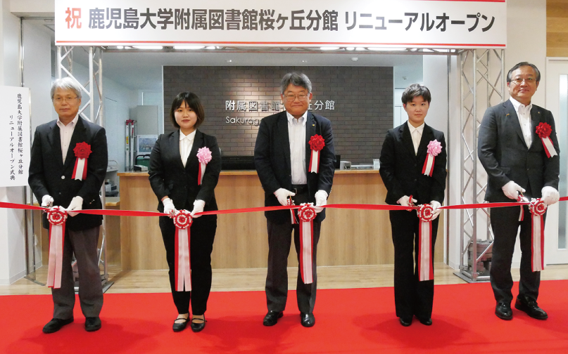 6月30日、附属図書館桜ヶ丘分館リニューアルオープン式典を実施しました。同館の1階にはアクティブな空間としてラーニングコモンズとグループ学習室を、2階には学修・閲覧用カウンターを、3階にはセミナールームを新たに整備し、個人やグループでの多様な学びのスタイルに対応できるようになりました。加えて、エレベーターやスロープの新設によりバリアフリーが図られました。