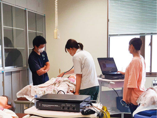 保健学科看護学専攻の3年生は臨地実習を目前に控え、実践的な知識を身につけるためにシミュレーター(実習用の模型)を活用した自己学習に励んでいます。