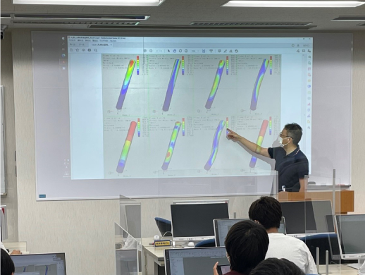 ものづくりの現場では、あらゆる場面でコンピュータを用いた技術が活用されています。「3次元CAD基礎」ではコンピュータ支援設計(CAD)に関する授業を行っています。