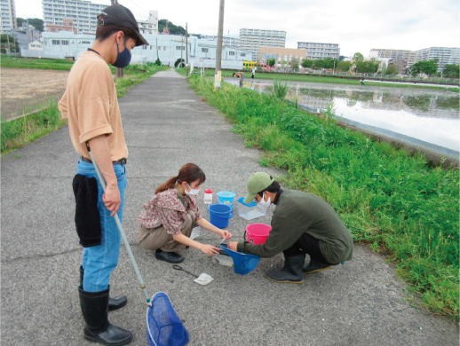 水や土の実験による現象を観察・測定することで、算出される諸定数への理解、環境との調和に配慮した構造物の設計に必要な水田生態系および水質調査法について学習しています。