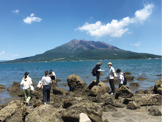 桜島を眼前にした錦江湾の安全な磯場において、生物の観察や採集を行っています。自然に恵まれた素晴らしい鹿児島のフィールドにおいて、学生たちは夢中で学んでいます。