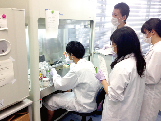 水産生物を用いた高度なバイオテクノロジーのスキルを身につけるための実験も行われています。こうした実験は安全に十分に配慮しつつ行われています。