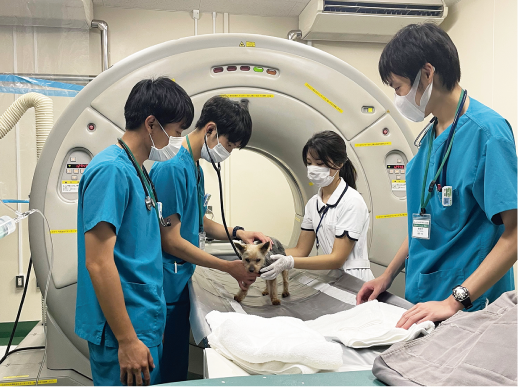 近年、獣医療でもさまざまな画像診断機器が利用できるようになってきています。学生は実際の診療に参加し、各種画像診断についての適応と読影を学んでいます。