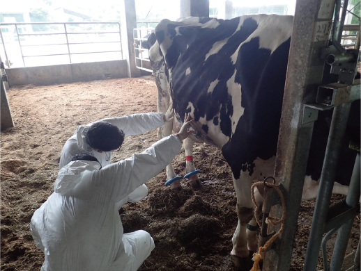 牛は品種・年齢・飼養目的・管理方法により、みられる疾病が異なります。学生はさまざまな牛の診療に参加し、疾病の種類・検査・予防などを総合的に学んでいます。