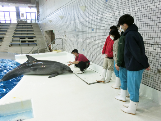 獣医療の対象動物には動物園や水族館の展示動物も含まれます。学生は多様な生物に対する知識と経験を備えておく必要があるため、動物園や水族館での診療に参加しています。