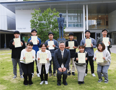 10月31日、令和4年度共通教育センター長賞表彰式を挙行しました。この表彰は、共通教育科目の通算GPAの値が3.5以上であった学生のうち、各学部の上位2名の学生を成績優秀者として表彰するものです。今回、法文学部、教育学部、理学部、医学部、工学部、農学部、水産学部より、計14名が受賞しました。受賞者の1人である法文学部の前薗 真鈴さんは、「課題の提出はとても大変だったが、先生方や友人、家族のサポートがあって受賞することができた。今後も勉強に励み夢を叶えたい」と想いを語りました。