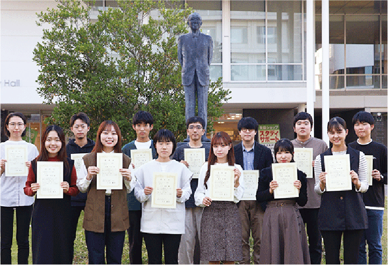 今回は令和4年度入学生の中から、法文学部・教育学部・理学部・医学部・工学部・農学部・水産学部の14名が受賞しました。
