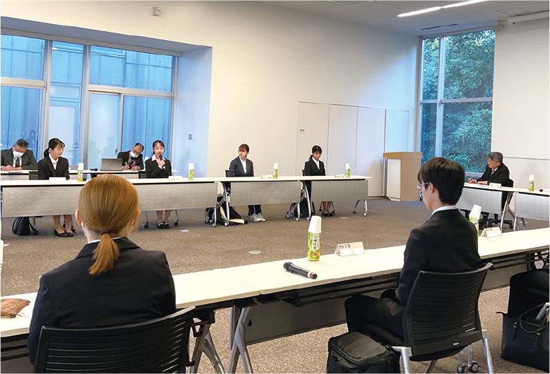 11月13日、「令和5年度学長と学部新入生との懇談会」を開催しました。この懇談会は学長自らが学生の現在の状況や将来の希望を聞き、今後の大学運営に役立てることを目的としており、各学部から15名の学生が出席しました。