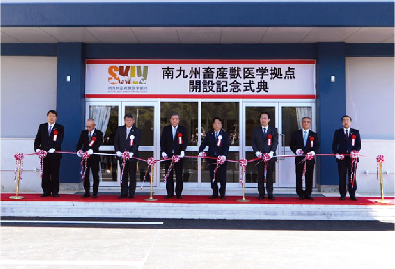 3月9日、令和6年4月にオープンする曽於市の南九州畜産獣医学拠点(通称SKLV=スクラブ)の開設記念式典が、県立財部高等学校跡地に整備したSKLV内の施設で盛大に挙行されました。式典には五位塚剛曽於市長と共同事業者の佐野学長をはじめ、来賓の方々や関係者等約250名が出席して完成を祝いました。